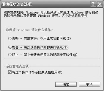Windows XP自带的驱动程序都通过了微软的WHQL数字签名,在查看通过数字签名的驱动程序时会看到一个图标。不过当我们在安装或升级设备驱动程序时,经常会看到图4所示的警告信息,说是“没有通过Windows徽标测试,无法验证它同Windows XP的相容性”,其实这是Windows XP的文件保护功能在起作用,以降低用户安装无保护驱动程序的风险,当然我们只要选择“仍然继续”按钮就可以忽略这一提示并完成驱动程序的安装。