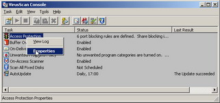 以上是这个软件的基本设置,它的特点就是简单直观但又不失安全。很适合我们这些非专业安全人士,但又希望自己爱机免受木马侵扰的用户。上面这些只完成了一半的设置,但还不能完全打造一个安全的免疫系统。 下面是另一重要武器mcafee viruscan,相信很多朋友在用,具体设置也已经有很多文章介绍,不再繁诉。 只是3点要提醒大家的: 1.建议用mcafee viruscan enterprise 8.0i这个版本,里面有很多新功能都很有用,比如锁文件,防止缓冲区溢出功能。 2.还有就是这个比较关键的一点,如图:勾选这3项,默认是没有构选的,因为很多病毒和木马都喜欢往系统目录里面放主程序,以及一些dll文件,把这3项构选有利于防范一些未知木马和病毒的入侵。同时要注意的是在装新软件的时,在确定软件没有毒之后把on-access scan暂时disable掉,如图。这样可以保证你装的软件可以正常运行。