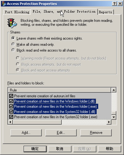 3.还有把这项前的勾去掉,或是在里面的规则里加上你要访问ftp的程序,如flashfxp,flashget等,如果不这样做有些ftp访问会出现连接失败 (10053:软件引起连接放弃)的错误。 以上是我使用这两款软件的经验,如果你有什么更好提高系统安全的方法,欢迎参与讨论。
