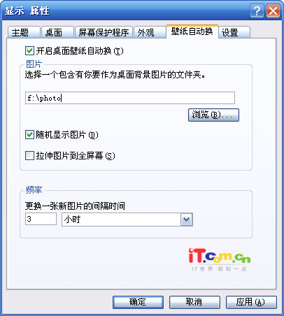 微软公司是软件界的巨头,相信大家一定不会陌生,但是他们也会编写一些实用的小软件,下面就来介绍几个出自这个软件豪门的小工具。 自动更换桌面背景——DesktopShow 下载地址:http://bbs.crsky.com/read.php?tid=47834&fpage=7 壁纸自动换(Slide Show) 是从 MicroSoft Windows XP PowerToys 里面提取出来的,它是 Microsoft 出品的一个桌面增强工具。 在桌面空白处点击鼠标右键来选择“属性”,在弹出的“属性”对话框中点击“壁纸自动换”标签,接着指定任意一个包含有你要作为桌面背景图片的文件夹为壁纸自动换的图片目录,在“频率”选项中可以设定自动更新壁纸的时间,从一秒到一小时或者一个月,设置完后别忘了点击“确定”按钮,这样桌面的背景就会自动更换了。(图1)
