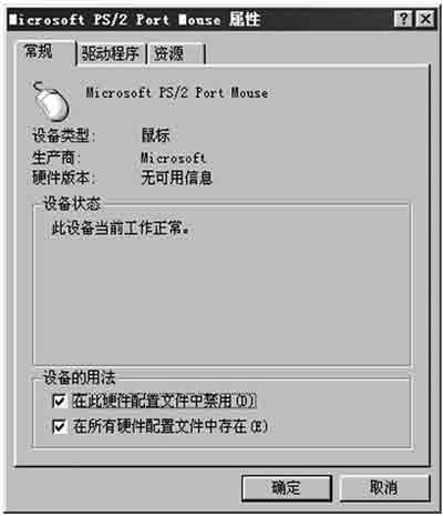 3.单击“设置”下的特定资源,再单击“删除”,然后单击“确定”。 六、禁用不再需要的设备 如果发生冲突的设备之一已经不再需要,可以将其禁用,以解决硬件冲突问题。如果禁用即插即用设备,那么,其他设备可自动获取这些设备的资源。如果禁用的设备不是即插即用型,那么必须从“设备管理”的硬件列表中删除此设备,然后将它从计算机中取出以释放所占用的资源。因此,在禁用不再需要的设备之前,应确定该设备能否“即插即用”。 (一)确定设备“即插即用”: 1.在“系统属性”的“设备管理器”选项卡上,双击要禁用的设备。 2.在“资源”选项卡上,查找“手工设置配置”按钮。如果出现该按钮,则表明该设备能够“即插即用”。 3.单击“确定”,返回“设备管理器”选项卡。 (二)禁用“即插即用”设备: 1.在“设备管理器”选项卡上,双击该设备。 2.在“设备的用法”下,单击以选中“在此硬件配置文件中禁用”复选框(如图4)wyjc4.tif,单击“确定”,然后再次单击“确定”。