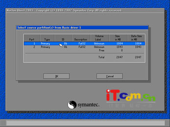 接着就是选择要备份的分区了,选好后点击“OK”按钮。(图3)
