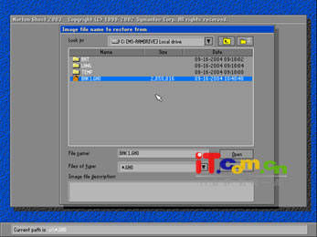备份文件的还原 当需要还原备份文件时,运行Ghost在主界面点击菜单“Local”→“Partition”→“From Image”(如果是还原硬盘的备份文件那点菜单“Local”→“Disk”→“From Image”),在弹出窗口中选择要备份的GHO文件,然后选择还原在哪个分区或者硬盘中,选好后点击“Yes”按钮就可以进行还原了。(图8)