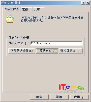 现在安装双操作系统的人很多,这样就可以在一台电脑中享受到多种操作系统带来的方便,但是在有效的硬盘空间中,怎么样才可以使系统的资源在双操作系统中得到共享呢?这样不仅仅可以节省硬盘空间,还可以提高系统的工作效率。下面就来介绍在windows98 和windows XP的双系统中怎么样共享系统资源。 共享“我的文档” 先在Windows 98下“我的文档”默认文件夹是在“系统分区下:My Documents”,而Windows 2000/XP下“我的文档”则是默认是在“系统分区下:Documents and Settings用户名My Documents”中的,如果要想共享“我的文档”,可以这么进行设置。 先把这二个系统中的“我的文档”里的资料都保存在另外一个文件夹中,如“F: Documents”;然后进入其中一个操作系统,在桌面上的“我的文档”上点击鼠标右键来选择“属性”,接着在“属性”对话框中点击“移动”按钮来选择保存资料的文件夹“F: Documents”,选好后点击“确定”按钮,这时会弹出个对话框,点击“否”就可以了,这样系统中“我的文档”路径就改为“F: Documents”了。在另一个操作系统下也是按相同的步骤进行设置。(图1)
