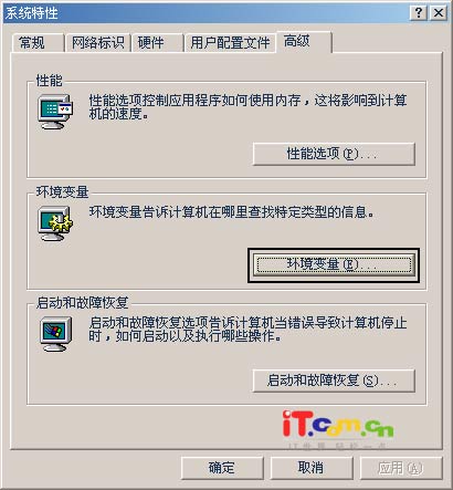 共享系统临时文件夹 在windows运行的时候,会在临时文件夹下存放一些临时文件,这些文件的体积也不小,而且每个操作系统中都有这样的临时文件夹,其实我们可以让多个操作系统共享一个系统临时文件夹。 先在硬盘上建立一个存放临时文件的文件夹,如:“F: emp”,接着右键点击“我的电脑”选择“属性”,在弹出的“属性”对话框中点击“高级”标签下的“环境变量”。(图6)