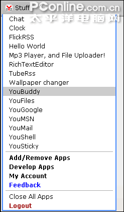 图三 YouOS的功能列表