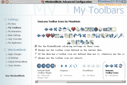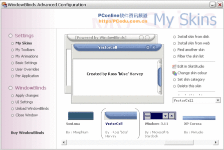 点评:笔者认为Style XP其软件本身的界面颜色搭配显得太过鲜艳刺眼,不如winblind看起来柔和、舒服。两个软件暂时都没有理想的中文版本。
