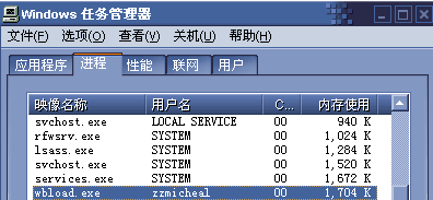 winblind 的一个特点就是占用内存非常少。但是应用主题的一刻,笔者p4机器的cpu占用率瞬间上升到100%,机器会感到明显的停顿,见下图右侧的一个CPU使用高峰。