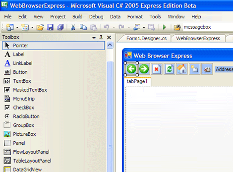 设计 Web 浏览器 图 2:从工具箱拖动控件是编写这一应用程序的关键