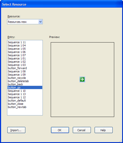 有意思的几点在编写这个项目时,我想到了几个小窍门。不过,可能它们实际上并不能说是窍门,而是一些技术,当您编写自己的代码时可能发现它们是有用的。 使文本和组合框响应 Return 键。Address ComboBoxes 和 Search TextBox 允许用户输入文本,然后在单击 Go 按钮时使用这个文本。使用 Text 属性从控件提取文本是很容易的。不过,如果按键盘上的“return”键就可以执行与单击一个按钮同样的操作,这样也很好。我通过从两个文本框检查 KeyUp 消息来使其奏效。当 KeyUp 消息到达时,我检查它是否是 Return 键。如果它是,就触发了与单击按钮相同的操作。 ComboBox 而非TextBoxWeb Browser Express 的第一个版本将一个 TextBox用于地址 URL 和 Search 框。这很奏效,但是在实践中每次都要手工输入 URL 十分麻烦。我删除了 ComboBox 并添加了一个 TextBox,用一些 URL 填充这一组合框来使用户开始。您可以从 ComboBox 属性资源管理器添加您自己的 URL。 集成搜索所有流行的 Web 浏览器都有一个可以输入搜索词汇的文本框,结果会返回到 Web 页中,而不需要首先浏览到搜索引擎。由于 MSN 搜索目前有了更新,这看起来是将此功能内置到我自己的 Web 浏览器中的最佳理由。 这非常简单。只需查看 Internet Explorer 中 MSN 搜索上的历史记录,看一下搜索字符串需要使用的格式。然后 Search 方法将搜索文本追加到 URL 并定位到该链接,结果作为一个标准 Web 页返回。 动画从图形化 Web 浏览器的早期以来,从 Web 请求内容就是有迹可寻的,这样用户就不会以为它们的计算机出了问题,或者以为所有东西都被锁定了。总的来说,让用户知道有些事在发生并且他们需要有耐心总是个好主意。 这是要实现的项目中我最喜欢的部分之一,如果您在艺术上有几分天赋,那么在创建能够想象到的最酷的徽标时,您可以得到不少乐趣。在本例中,我在一个动画程序中创建了一系列大约 12 个帧,并将其作为 BMP 图像导出,加载到 C# Express 中。 图 3:添加图形十分简单。为一个按钮或 PictureBox 选择图像属性,您可以直接从磁盘导入图像。在开始前确定图像的大小正确。