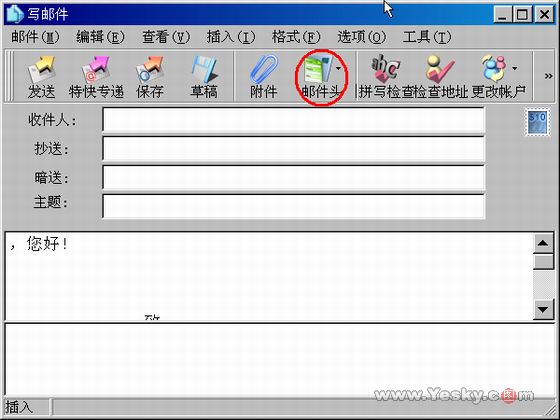 实现方式为:可以在“收件人”一栏手工填入多个E-mail地址,各地址用逗号、分号或者回车分隔。也可以单击“收件人”按钮,这时会弹出“选择地址” 对话框(此前应已经建立了地址簿),把其中的一个或多个地址名单或者一个组添加到“收件人”列表框。并且还可以在“抄送”、“暗送”栏目中添加地址。“抄送”表示邮件将同时被发送给其他人,所有“抄送”E-mail地址都将以明文传送,邮件接收者可以通过查看邮件头信息,知道此邮件被发送给了哪些人;“暗送”方式的接收者则看不到“暗送”所填写的邮件地址。如果你在写邮件时发现邮件头没有“暗送”,那么可以点击“邮件头”图标加入(如图1)。