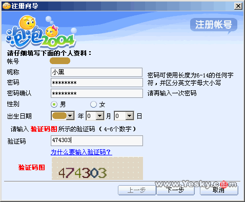 输入一个你喜欢的用户名,如果没有人注册过这个名子就可以进入下步的申请,在此输入用户资料(如图4)。