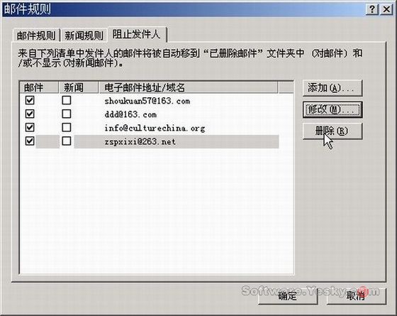 当你要允许被阻止的发件人再次给你来信,那么就必须把它从“黑名单”中删除。此时,你可进入“黑名单”。