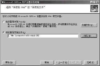 我们首先要用Office工具导出办公室电脑中的用户设置文件。在导出用户设置文件之前必须要关闭所有正在运行的Office程序,否则在导出文件的过程中会出现警告提示。接着依次单击“开始”菜单中的“程序”,选择“Microsoft Office 工具”中的“用户设置保存向导”,弹出“Microsoft Office用户设置保存向导”对话框,单击“下一步”按钮,出现如图1所示的操作界面,选择“保存本机的设置”单选框,单击“下一步”按钮,在出现的操作界面中选择“将设置保存到文件”,输入保存的设置文件的路径和文件名,单击[完成]按钮,系统将自动提取Office环境中的用户设置文件,并打包到指定的文件中去(如图2)。