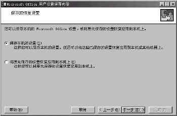 把打包的用户设置文件(小大视具体情况,一般在几百KB)复制到家中的电脑中。运行“Microsoft Office 工具”中的“用户设置保存向导”,在弹出的如图2所示的对话框中选择“将原先保存的设置恢复应用到本机上”单选框,单击“下一步”,直至完成即可。这时,我们打开家中的Office程序,你就会惊喜地发现,相应的组件程序中已经有了办公室电脑中对应组件程序中的“宏”了(同样要注意在恢复应用用户设置文件之前,要关闭所有正在运行的Office程序)。