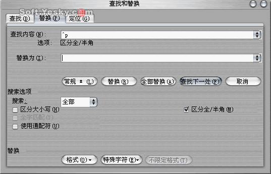 其实大家可以看到,二者的效果是等同的,都相当于在“查找”一栏中输入“^P”;“替换为”一栏空着,然后按“全部替换”。