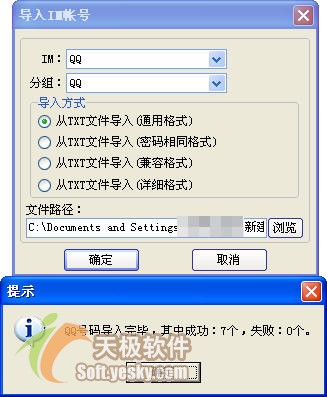 如果您有多个 IM帐号,如:QQ、MSN、POPO、UC等等,可以先将它们在记事本中编辑好后直接导入(图3)。