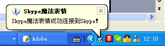 如果运行成功则桌面右下角会显示一个可爱的脚丫图标。同时如果现实与 Tom-Skype 的链接情况,如图所示为链接成功,则您可以开始对您的好友施展魔法了。