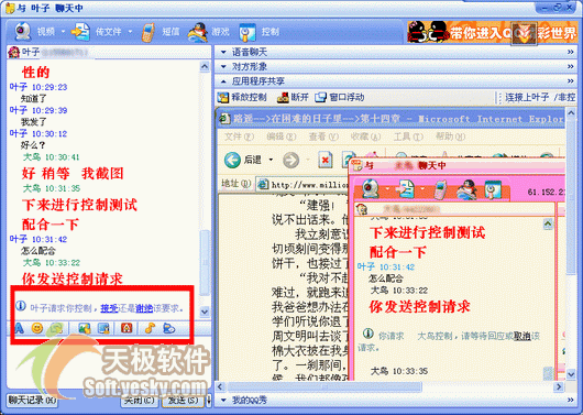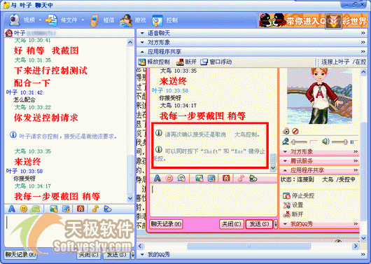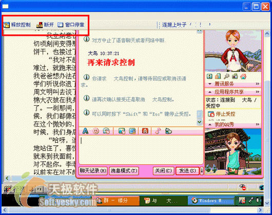 请求控制是自愿的,我不可以主动控制对方,所以我们在使用此功能是要确认对方意图,另外请求控制后己方界面会出现“释放控制”,可以选择它放弃控制权。 图7