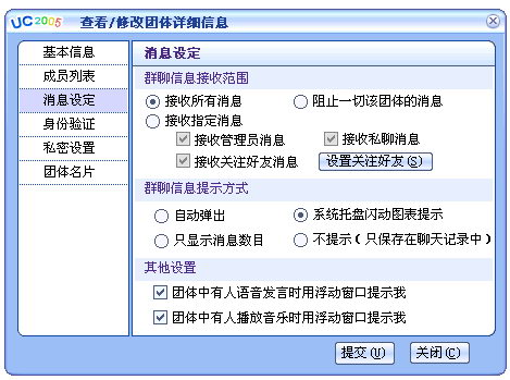 团体消息设定 :更加方便,人性化。有效地避免了骚扰的产生