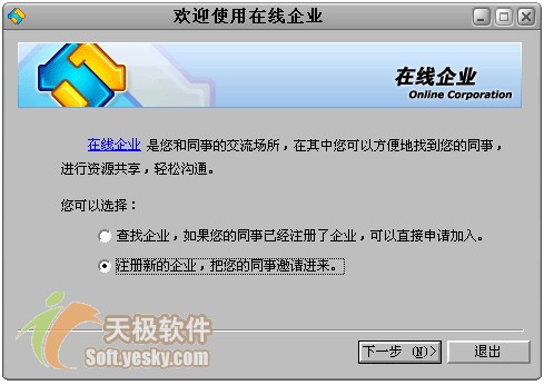TM2005在主界面增加了“我的企业”功能,可通过该功能与自己的企业内部交流更为方便,也可进行新企业注册(如图)。