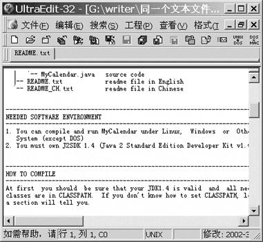 解决的方法很简单,先下载一个名叫uitraedit的软件,用它来打开这样的文件,会出现警告,询问是否将其转换为DOS格式,也就说将其中的一个字符的换行转换成Windows下的回车加换行。无论点“是”还是点“否”,UltraEdit都能正确地显示文件内容,这是因为UltraEdit具有将一个字符的换行转换成回车加换行的功能。