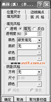 3. 右击上述图形,在随后弹出的快捷菜单中,选择“对象属性”选项,打开“对象属性”对话框(如图1),切换到“位置尺寸”选项卡中,将“高度”和“宽度”均设置为70;切换到“边线端点”选项卡下,将“类型”设置为“空线”;再切换到“填充阴影”选项卡下,选中“填充”选项,按“底色”右侧的下拉按钮,选中“渐变填充”选项,打开“设置背景”对话框,选中“双色渐变”选项,将“颜色1”设置为“棕色”,“颜色2”保持“白色”不变,再选中“从中心辐射”的第3种(左下)类型,确定退出(如图2)。