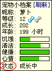 宠物具有生命力的状态是成长状态,宠物只有在成长状态才会随着时间增加成长值,主人可以暂定成长状态或者恢复成长状态。