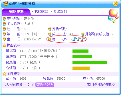 宠物等级是宠物当前状态的标志性属性,由宠物成长值决定。