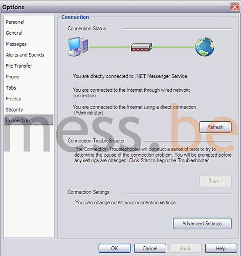 经过更一步的挖掘,Connection TroubleShooter被我接受了。在安全问题选项中,你可以选择禁止在对话中出现超连接(防止蠕虫病毒)也可以禁止其他的一些选项。