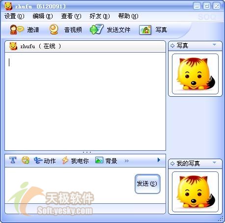 登录搜Q后,发现其主界面与QQ差不多(如图2所示),在聊天窗口有我的好友、陌生人、黑名单三个分组,分别来管理我们的好友。双击任一好友的昵称,就可以弹出好友聊天窗口(如图3所示),其使用方法与QQ相差无几,QQ具有的音视频聊天、发送文件、自定义表情等功能,都可以在这里找到其影子,具体操作方法非常简单,在这里就不再赘述了。
