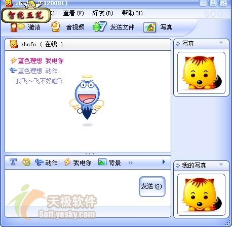 细心的朋友一定看到了,在搜Q聊天窗口的文本输入框上方,可以看到有一个“闪电”图标,这个功能与MSN的闪屏差不多,在好友长时间没有与你说话,或是想提醒一下好友的时候,可以使用“我电你”功能来引起好友的注意。另外搜Q还有一个特色功能,就是可以给好友发送动作(如图4所示),点击动作按钮可以看到搜Q的所有动作图片(如图5所示),我们也可以自定义添加一些GIF动作图片发送给好友。