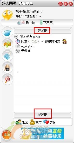 盛大圈圈是由盛大网络自主开发的新一代开放式即时通讯娱乐平台,它除了具有即时文字聊天、语音通话、视频对话、文件传输等基本即时通讯功能以外,还具有其他一些特色功能,下面就随笔者一起感受一下盛大全权给我们带来怎样的体验!