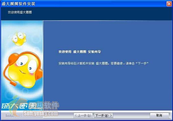 下载盛大圈圈安装程序,其大小为10.3MB,基本上比较合理。运行下载的程序,令笔者眼前一亮,可以看到一个界面十分新颖漂亮的安装程序(如图1),显得非常清爽,有别于其他程序的死板。左侧的卡通任务就是盛大圈圈的形象了,非常可爱、精致,相比于其他即时聊天软件的形象,盛大圈圈的设计绝无不及。