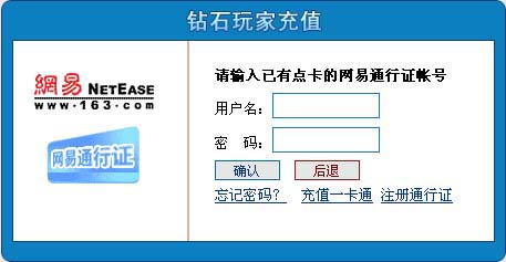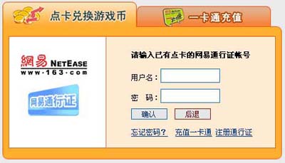 2、确认后,输入已充值一卡通点数的帐号与密码(有关网易一卡通充值请查阅:http://pay.163.com/account/index.html)(图二)
