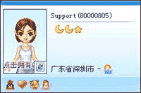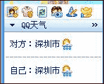 4、 彼此都选用了该功能的QQ好友,在交谈时将在QQ秀下方的空白栏目区内自动显示彼此所在城市的名称。如果对方有Q-Zone,系统自动显示的是Q-Zone信息,用户可在该位置将其手工设置为显示彼此所在城市。