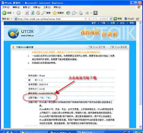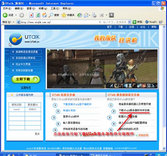 点击链接“下载UTalk服务器软件并安装”,打开服务器软件下载页面: