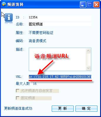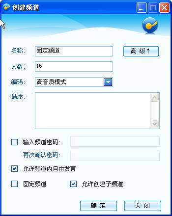 我们可以建立自己的语音频道,点击“创建”按钮,会弹出创建频道窗口,如下图所示: