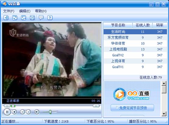轻点鼠标安装,打开简单易用的操作界面,笔者发现在320×240的分辨率下,QQ直播的视频和声音均相当流畅,和以往的mms流比起来,效果确实是有了长足进步。