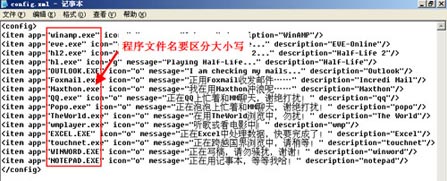 用记事本等打开安装目录下的config.xml文件,在与之间仿照以下格式可添加程序信息。例如,要添加maxthon运行的信息,则输入: