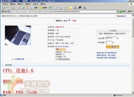 如果你对该商品非常满意的话,就可以在窗口右上角输入要购买的价格及数量,然后点击购买按钮(如图6所示),接下来在弹出窗口中输入你的详细联系方式,确认无误后提交,就等着商家与你联系了。