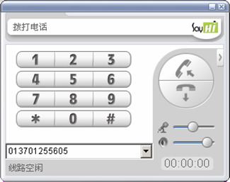 PC--PHONE电话覆盖全国。手机、固话、小灵通,直接拨打无须接通特殊服务号,接通速度快,话音清晰、稳定。比一般IP低一半的话费让你通话无极限。同时还具有通话记录管理功能。