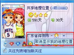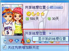 如果您选用了“共享地理位置和天气预报”功能,您可以在自己的头像Tips(即用户提示)里设置显示或关闭“共享地理位置”功能。