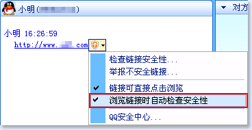 答:可以。您可以点击该链接右边的聪明标记并从下拉菜单中选择打开“浏览链接时自动检查安全性”菜单选项(此选项默认关闭)。此选项打开时,每次您点击浏览所有点对点消息中的链接时,都将自动先到QQ安全中心检查该链接的安全性:如果是腾讯审核确认的不安全链接,QQ安全中心将阻止您对该链接的访问,并给您警告和提示,以避免您受到安全威胁;否则就正常访问链接。自动链接安全检查的速度很快,您不会感觉到,也不会受到其他的影响。