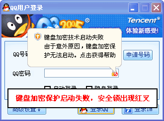 25、为什么我的QQ登陆密码框右边的安全锁上有个红叉叉?如何解决?