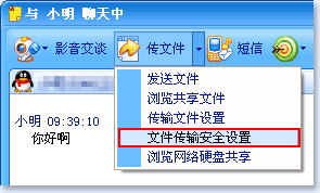 在聊天窗口工具栏的“文件”下拉按钮菜单中选择“文件传输安全设置”