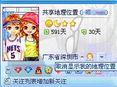答:如果您选用了“共享地理位置和天气预报”功能,您可以在自己的头像Tips(即用户提示)里设置显示或关闭“共享地理位置”功能。