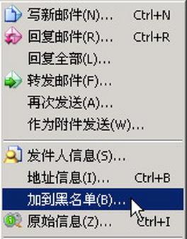 在收件箱中右击你认为是垃圾邮件的信件,然后单击“加到黑名单”命令,并单击“确定”按钮,那么今后如果在收到这个地址发来的邮件,Foxmail就会自动的将它打入“冷宫”了(如图)。