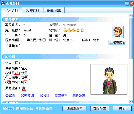 QQ相册是QQ用户的个人相片展示、存放的平台,如果您的相册是设为公开属性,其他用户可以通过QQ客户端进行相册查看(参考图标如下)。所有QQ用户免费享用16兆相册空间,QQ会员、QQ交友高级用户更可免费享用100兆超大空间!