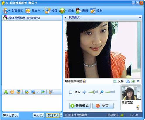 随着宽带时代的到来,我们也为您打造了清晰流畅、交互更易的超级视频。无需更换特殊的摄像头、显卡等硬件配置,视频画面大小和清晰度提高四倍,并支持全屏显示。超级视频实时显示视频网络状态、简单易用的视频设置、一键拍照、视频防打扰设置,给您带来更便捷的体验。